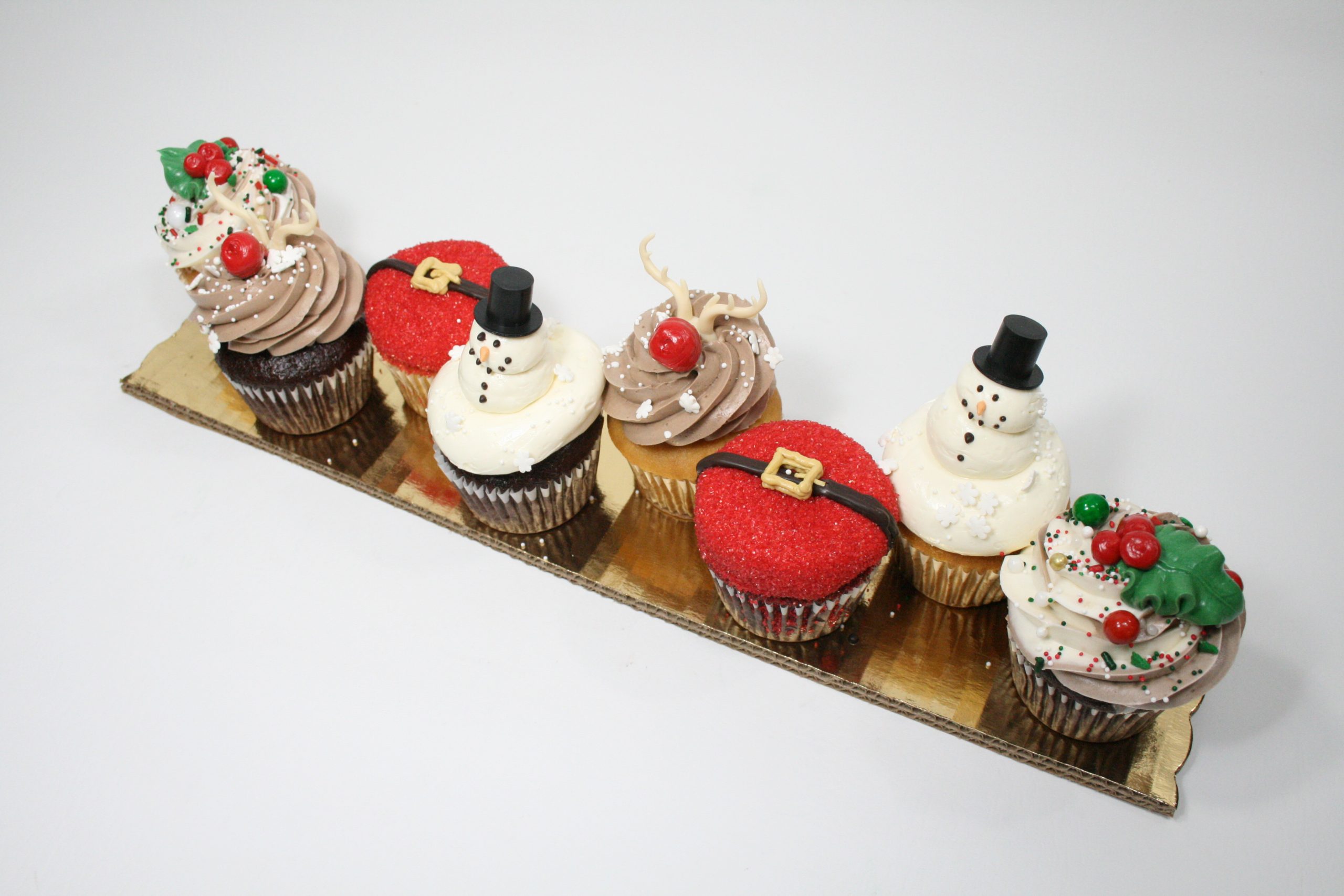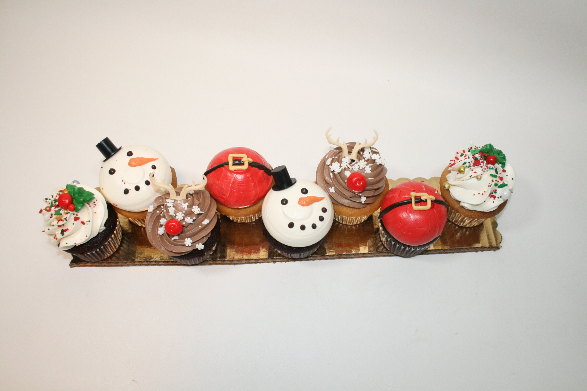 8 pack of Vanilla & Chocolate cupcakes with an assortment of Christmas themed decorations.