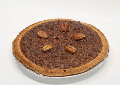 Flaky open-faced pie crust filled with a maple infused custard, generously studded with pecans.