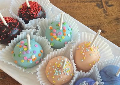Cake pop Assortment $30 CLICK TO ORDER A box of 12 chef’s choice assorted flavors including: Vanilla, Confetti, Chocolate, Red Velvet, & Cheesecake. Dipped in White, pastel colors & dark chocolates garnished with Sprinkles.