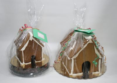 Fully built gingerbread houses so you can enjoy the fun! Houses come packaged with icing mix to make at home! Candy sold separately!