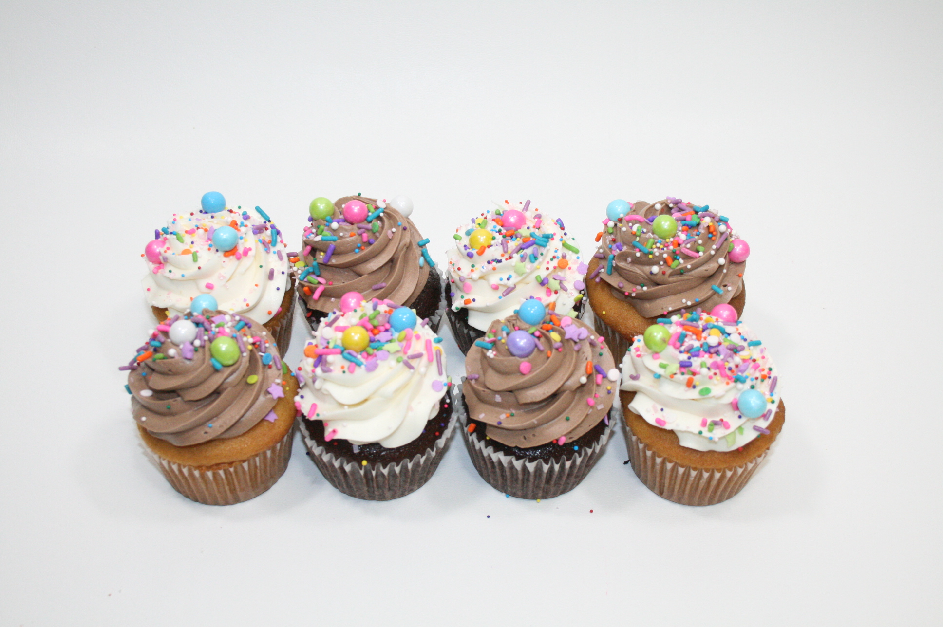 8 pack Birthday theme includes Vanilla & Chocolate with alternating frosting, topped in multicolor sprinkles…$26 click to order