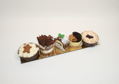 Cannoli, Éclair, Milky Way Tart, Carrot Cake, Red Velvet, Fruit Tart, seasonal petit four squares